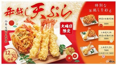 グルメ/スイーツ はなまるうどん 大晦日限定 年越し天ぷら!長寿を願う大ぶりの「上海老天」・出汁と相性のよい「野菜かき揚げ」 yuim 2024年12月30日 はなまるうどんで、「上海老天」、「野菜かき揚げ」の年越し天ぷらセットが大晦日限定で販売されます。テイクアウトでも店内でも楽しめます。…続きを読む えん食べ [グルメニュース] はなまるうどん 大晦日限定 年越し天ぷら!長寿を願う大ぶりの「上海老天」・出汁… https://entabe.jp/57899/hanamaruudon-toshikoshi-tenpura-set はなまるうどんで、「上海老天」、「野菜かき揚げ」の年越し天ぷらセットが大晦日限定で販売されます。テイクアウトでも店内でも楽しめます。 Source: えん食べ こちらもおすすめです!2026年午年スイーツまとめ第2弾!文明堂「ムーミン お年賀カステラ」・銀座コージーコーナー「干支のケーキ(午)」など 2026年の干支「午」にちなんだ午年スイーツまとめの第2弾をご紹介します。文明堂「ムーミン […]【2025年末】いま注目のアニメとグルメコラボ3選!この冬だけの限定フードと特典を満喫~銀だこ、チャミスル、ピザハット~ 2025年冬から2026年にかけては、国民的アニメ作品と有名チェーンが次々とコラボを展開し、限定メニューやオリジナルグッズで大きな […]【本日発売】今注目の「あまおう」いちごグルメ3選!パフェ・アフタヌーンティー・ビュッフェで楽しむ贅沢シーズン あまおうは濃厚な甘さと瑞々しさで高い人気を誇るブランドいちごです。今季は都内ビストロから高層ホテル、京都のラグジュアリーホテルまで […]【本日発売】【12月2日~発売】セブン-イレブン 新商品スイーツまとめ「あんバターどら焼」「7プレミアム パンケーキバーガー いちご&ホイップ」など セブン-イレブンで、12月2日から順次発売される新商品スイーツをご紹介します。「あんバターどら焼」や「7プレミアム […]2026年はこれで決まり!注目のグルメ福袋5選~お得と楽しさを詰め込んだ新春限定セット特集~ 福袋が2026年も早くも盛り上がりを見せています。今回ベーカリー、和食、スイーツ、中華、ハンバーガーと他ジャンルの人気ブランドから […]【12月9日~発売】セブン-イレブン 新商品スイーツまとめ「ごほうびとろ生チーズケーキ 濃厚クリームチーズ」「クリスマスパフェ 宇治抹茶といちご」など セブン-イレブンで、12月9日から順次発売される新商品スイーツをご紹介します。「ごほうびとろ生チーズケーキ […]子どもの爆食が止まらない!久世福商店のおすすめご飯のお供5選|濃厚な味わいで炊きたて白米がスッカラカン 久世福商店(運営:サンクゼール)で販売中のおすすめご飯のお供を5つ紹介します。食欲がないときでもコレがあればペロリとご飯をたいらげ […]【本日発売】ハンバーガー好きは気分上々!「第8回 ハンバーガーフェス2025 in お台場」11月30日(日)に開催 2025年11月30日(日)に「第8回 ハンバーガーフェス2025 in […]【2025年冬】おすすめ手土産 新商品まとめ!ミニマル・ブリュレメリゼ・TOKYOチューリップローズ・BAKE CHEESE TART・チーズガーデンの5ブランド 2025年冬に各社から登場する、おすすめ手土産の新商品をまとめてご紹介します。ミニマル、ブリュレメリゼ、TOKYOチューリップロー […]名古屋土産の新定番「なごにゃん」って知ってる?「なごやん」との違いを食べ比べてみた 猫の肉球の形をした「なごにゃん」は2023年6月に発売された和菓子です。現在では名古屋銘菓「なごやん」ととも、名古屋の定番商品とし […]【久世福商店 福袋2026】店舗限定は「白うま袋」「赤うま袋」「青うま袋」の全3種、オンライン限定は「梅」「竹」「松」「特選」の全4種がラインナップ 久世福商店の福袋2026は、店舗限定で3種類、オンライン限定で4種類がそれぞれ発売されます。予約・発売日は異なっている点に注意が必 […]ロッテリア・ゼッテリア「いつでもいっしょ♪リラックマのぬいぐるみ福袋2026」4,800円分のお食事クーポン入り! ロッテリアおよびゼッテリアで、「いつでもいっしょ♪リラックマのぬいぐるみ福袋2026」が発売されます。オリジナルグッズとお食事クー […]【2025年冬】いちごスイーツ・お菓子まとめ「アイスの実Wジェラート<苺・ミルク>」「QBBチーズデザート6P 福岡県産あまおう苺」など 2025年冬に各社から発売されるいちごスイーツ・お菓子をまとめてご紹介します。「アイスの実Wジェラート<苺・ミルク>」や「QBBチ […]モスバーガー「2026モス福袋」マイメロディ&クロミとコラボ!販売額相当のお食事補助券やフェイスポーチ付きエコバッグ入り モスバーガー店舗で、サンリオの大人気キャラクター「マイメロディ」&「クロミ」とコラボレーションした「2026モス福袋」が販売されま […]KALDI 鍋の〆は何にするか決めた?最後の一滴までスープを味わえるラーメン5選 2025年の冬、KALDI(カルディ)で購入できる鍋の〆にピッタリなラーメンを5つ紹介します。生麺やノンフライ麺、小分けになってい […]【可愛すぎる和菓子】京都・青木光悦堂の「ハムスターモ
