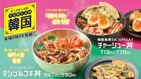 ほっかほっか亭で、「YUM YUM(ヤムヤム)韓国シリーズ」が発売されます。「韓国風煮たまご入り チャーシュー丼」や「ヤンニョムチキン入り テジプルコギ丼」など。