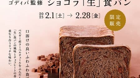 高級「生」食パン専門店「乃が美」の店舗で、数量限定の「ゴディバ監修 ショコラ『生』食パン」と「ゴディバ監修 チョコレートクリーム」が発売されます。