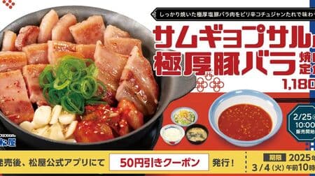 グルメ/スイーツ 松屋「サムギョプサル風極厚豚バラ焼肉定食」2月25日発売!コチュジャンたれ・キムチ・にんにくスライスなどと一緒に yuim 2025年2月23日 松屋で、「サムギョプサル風極厚豚バラ焼肉定食」が発売されます。期間限定でモバイルクーポンで注文すると50円引きになります。…続きを読む えん食べ [グルメニュース] 松屋「サムギョプサル風極厚豚バラ焼肉定食」2月25日発売!コチュジャンたれ・キム… https://entabe.jp/58075/matsuya-samugyopusaru-meal-set 松屋で、「サムギョプサル風極厚豚バラ焼肉定食」が発売されます。期間限定でモバイルクーポンで注文すると50円引きになります。 Source: えん食べ こちらもおすすめです!【本日発売】【2月25日~発売】セブン-イレブン 新作スイーツまとめ「さくら香るホイップ&さくらシフォン」「春の三色こもち(桜もち・餡もち・草もち)」など セブン-イレブンで、2月25日から順次発売される新作スイーツをご紹介します。「さくら香るホイップ&さくらシフォン」や「春の三色こも […]【本日発売】【2月25日~発売】セブン-イレブン 新作パンまとめ「もちもち食感カスタードブレッド」「おいものベイクドリング」など セブン-イレブンで、2月25日から順次発売される新作パンをご紹介します。「もちもち食感カスタードブレッド」や「おいものベイクドリン […]【2月25日発売】ファミリーマート 新作パンまとめ「クロッキー(チョコクリーム)」「3色ケーキドーナツ3個入」など ファミリーマートで、2月25日に発売される新作パンをご紹介します。「クロッキー(チョコクリーム)」や「3色ケーキドーナツ3個入」な […]【2月25日発売】ファミリーマート 新作スイーツまとめ「むにほっぺ いちごみるく」「贅沢いちごミルクパフェ」など ファミリーマートで、2月25日に発売される新作スイーツをご紹介します。「むにほっぺ […]【2月25日発売】ローソン 新作スイーツまとめ「いちごのバターサンド」「苺と抹茶のムース」など ローソンで、2月25日に発売される新作スイーツをご紹介します。「いちごのバターサンド」や「苺と抹茶のムース」などが登場。…続きを読 […]【本日発売】松屋「サムギョプサル風極厚豚バラ焼肉定食」2月25日発売!コチュジャンたれ・キムチ・にんにくスライスなどと一緒に 松屋で、「サムギョプサル風極厚豚バラ焼肉定食」が発売されます。期間限定でモバイルクーポンで注文すると50円引きになります。…続きを […]【本日発売】【2月25日発売】ローソン 新作スイーツまとめ「いちごのバターサンド」「苺と抹茶のムース」など ローソンで、2月25日に発売される新作スイーツをご紹介します。「いちごのバターサンド」や「苺と抹茶のムース」などが登場。…続きを読 […]【2月25日~発売】セブン-イレブン 新作スイーツまとめ「さくら香るホイップ&さくらシフォン」「春の三色こもち(桜もち・餡もち・草もち)」など セブン-イレブンで、2月25日から順次発売される新作スイーツをご紹介します。「さくら香るホイップ&さくらシフォン」や「春の三色こも […]【2月25日~発売】セブン-イレブン 新作パンまとめ「もちもち食感カスタードブレッド」「おいものベイクドリング」など セブン-イレブンで、2月25日から順次発売される新作パンをご紹介します。「もちもち食感カスタードブレッド」や「おいものベイクドリン […]【本日発売】【2025年冬】マクドナルド最新キャンペーンまとめ ― チキンマックナゲット割引 × ホリデーマックフルーリー ― マクドナルドがこの冬食事とスイーツの両面で楽しめる新キャンペーンを同時展開します。チキンマックナゲットがお得に味わえる特別企画と、 […]【2025年11月】ドトール 新メニュー・新商品まとめ「トリュフ香る ミラノサンド 炭火焼きローストビーフ」「ナッツ香るダブルチョコレートケーキ」など ドトールコーヒーショップで11月27日に発売される、新メニュー・新商品をまとめてご紹介します。「トリュフ香る ミラノサンド […]【福袋2026年】不二家「福来る!ペコちゃんミルキーBOX2026」キルティングバッグや手帳入り!新春スイーツ&ギフトも 不二家洋菓子店で、福袋「福来る!ペコちゃんミルキーBOX2026」や「スイーツおせち」、「新春アソートギフト2026」などが順次販 […]【2025年冬】ピザチェーン新商品まとめ!ピザハット、ドミノ・ピザ、ピザーラ、アオキーズ・ピザの4ブランド 2025年冬に、ピザチェーンから発売される新商品をまとめてご紹介します。ピザハット、ドミノ・ピザ、ピザーラ、アオキーズ・ピザの4ブ […]秋の誘惑りんごスイーツ.。.:*☆ リンゴを楽しむ!食べつくす♪明日作りたくなる!見た目も味も100点満点なリンゴスイーツのアイデアをご紹介します.。.:*☆ハッセル […]【本日発売】【11月18日~発売】セブン-イレブン 新商品スイーツまとめ「ほうじ茶に恋する ご褒美の和パフェ」「7プレミアム やわらかシフォンのホイップサンド」など セブン-イレブンで、11月18日から順次発売される新商品
