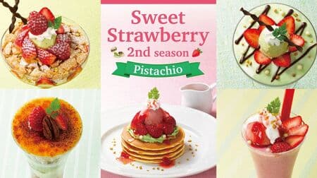 ロイヤルホストで、「Sweet Strawberry 2nd season Pistachio」が販売されます。「苺とピスタチオのブリュレパフェ」や「苺とピスタチオの春色パンケーキ」など6品。