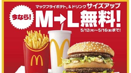 マクドナルド「ひるまック」マックフライポテト&ドリンクをLサイズに無料サイズア…