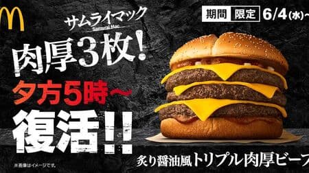 グルメ/スイーツ マクドナルド 夜マック「炙り醤油風 トリプル肉厚ビーフ」大好評につき2週間だけ復活!100%ビーフ3枚×チェダーチーズ3枚 yuim 2025年6月3日 マクドナルドで、「炙り醤油風 トリプル肉厚ビーフ」が大好評だったことを受け、2週間限定で販売されます。夕方5時からの夜マック限定。…続きを読む えん食べ [グルメニュース] マクドナルド 夜マック「炙り醤油風 トリプル肉厚ビーフ」大好評につき2週間だけ復… https://entabe.jp/58405/mcdonalds-triple-nikuatsu-beef マクドナルドで、「炙り醤油風 トリプル肉厚ビーフ」が大好評だったことを受け、2週間限定で販売されます。夕方5時からの夜マック限定。 Source: えん食べ こちらもおすすめです!【本日発売】マクドナルド冬の定番「グラコロ」今年も登場!新商品「コク旨ビーフデミグラコロ」と「シャカシャカポテト ローストガーリックバター味」も マクドナルドで、冬の定番商品「グラコロ」と新商品「コク旨ビーフデミグラコロ」、サイドメニュー「シャカシャカポテト […]ゴディバ「ホリデー コレクション2025」商品まとめ!クリスマス限定チョコ&ケーキが登場~家族や友人と過ごす冬に彩りを添える、特別なラインナップ~ ゴディバでは2025年11月1日からクリスマスシーズン限定「ホリデー コレクション2025」がスタートしています。ブッシュ ド […]【2025冬ギフト】DEAN & DELUCA「冬のおいしい贈りもの」お歳暮・WINTER GIFTまとめ 2025冬ギフトのDEAN & DELUCA(ディーン&デルーカ)は、お歳暮やWINTER […]「マクドナルドの福袋2026」Francfrancと初コラボ!ビッグマックスープジャーや商品無料券入り–公式アプリで事前抽選販売受付 マクドナルドと、インテリアブランド「Francfranc(フランフラン)」が初めてコラボレーションした「マクドナルドの福袋2026 […]【本日発売】いちごとココアの贅沢な出会い「いちごチーズケーキwithココア」が資生堂パーラーから数量限定発売 季節の旬スイーツとして、資生堂パーラーはあまおういちごとココアの風味を楽しめるチーズケーキを数量限定で発売します。芳醇なチーズと甘 […]【本日発売】ちいかわたちの“討伐”がごちそうに!常設コラボカフェ「ちいかわレストラン」で新フェアが開幕!2025年11月27日(木)から始まる「討伐フェア」で、物語の名シーンを食で味わおう 池袋PARCO常設コラボカフェ「ちいかわレストラン」の新たなテーマフェア「討伐フェア」が、2025年11月27日(木)よりスタート […]冬支度はじめます♡ぽかぽか鍋であったまろう♪ そろそろ冬支度はじめませんか?冬といえば「鍋」ですよね♪鍋はもっと自由でいい!みんなの美味しい・楽しい鍋アイデアをご紹介.。.:* […]【2025年11月発売】新作アイスまとめ第2弾「セブンプレミアム クッキーナッツバー」「爽 贅沢濃味バニラ」など 2025年11月に発売される新作アイスまとめの第2弾をご紹介します。「セブンプレミアム クッキーナッツバー」や「爽 […]【2025年11月】グリコ新商品まとめ~パピコ、アーモンド効果、ジャイアントコーン、マイルドカフェオーレ~ 11月は、グリコから季節感あふれるフレーバーや健康志向のドリンクなど、魅力的な新商品が続々と登場しました。パピコ、アーモンド効果、 […]【2025年11月後半】注目のアニメコラボカフェ最新情報まとめ!~かえるのピクルス、たまごっち、最強無敵連合~ 2025年11月後半は、アニメの人気キャラクターやゲームとコラボした注目のコラボカフェが多数オープンします。限定メニューやオリジナ […]コメダ珈琲店 冬の定番「グラクロ」グラタンクロケット×特製ドミグラスソース!新作「グラクロ~海老香るトマトソース~」も コメダ珈琲店で、冬の定番として毎年好評の「グラクロ」と、新作「グラクロ~海老香るトマトソース~」が季節限定で販売されます。…続きを […]2025年12月発売 エースコック新作インスタント麺まとめ~スーパーカップ、スープはるさめ~ エースコックからスーパーカップ、スープはるさめといった人気シリーズの新作が登場します。辛さで温まりたい人も、野菜たっぷりの鍋気分を […]【11月25日~発売】セブン-イレブン 新商品スイーツまとめ「7プレミアム しろもこパフェ」「ヨーグルトシュークリーム」など セブン-イレブンで、11月25日から順次発売される新商品スイーツをご紹介します。「7プレミアム […]シャトレーゼ 濃厚スイーツまとめ「Dessertパルフェ 北海道産フロマージュ」「チョコバッキー カジゴン」など シャトレーゼで販売されている、冬にぴったりの濃厚スイーツをピックアップしてご紹介します。「Dessertパルフェ […]【本日発売】コメダ珈琲店 冬の定番「グラクロ」グラタンクロケット×特製ドミグラスソース!新作「グラクロ~海老香るトマトソース~」も コメダ珈琲店で、冬の定番として毎年好評の「グラクロ」と、新作「グラクロ~海老香るトマトソース~」が季節限定で販売されます。…続きを […]【2025年11月26日~開催】ロッテリアの冬限定「苺フェア」情報まとめ フレッシュないちごのおい