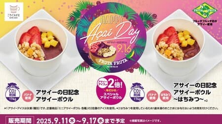 かっぱ寿司では、9月16日の「アサイーの日」を記念して、アサイーを使用した特別メニューを販売します。9月11日(木)からの1週間限定でアサイーアイスが2倍になった贅沢アサイーボウルなどここでしか味わえないスイーツが登場します。