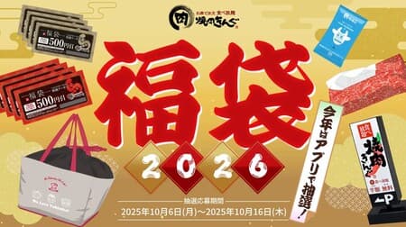 グルメ/スイーツ 2025年10月6日から焼肉きんぐ「福袋2026」が抽選受付開始!クーポンと遊び心あふれる限定グッズがセットに yuim 2025年10月4日 「焼肉きんぐ」から、恒例の福袋が登場します。2026年の新春「焼肉きんぐの福袋2026」は総額4000円分のクーポン券に加え、非売品のグッズが4点も詰まったお得なセット。価格は税込3000円で、アプリ……続きを読む えん食べ [グルメニュース] 2025年10月6日から焼肉きんぐ「福袋2026」が抽選受付開始!クーポンと遊び心あふれ… https://entabe.jp/58950/yakiniku-king-fukubukuro-2026 「焼肉きんぐ」から、恒例の福袋が登場します。2026年の新春「焼肉きんぐの福袋2026」は総額4000円分のクーポン券に加え、非売品のグッズが4点も詰まったお得なセット。価格は税込3000円で、アプリ限定の事前抽選販売となります。 Source: えん食べ こちらもおすすめです!【2025年ホリデーシーズン】スターバックス おすすめフードまとめ「ナッツ&キャラメルチーズケーキ」「ストロベリー&チョコレートタルト」など スターバックスで販売されている、ホリデーシーズンのおすすめフードをまとめてご紹介します。「ナッツ&キャラメルチーズケーキ」 […]いま注目のコラボカフェ3選!人気ゲーム・アイドル・アニメの世界観を体験できる限定空間~FF、ももクロ、機械じかけのマリー~ 2025年冬は、人気ゲームからアイドルグループ、アニメまで、幅広いジャンルのコラボカフェが続々と開催されます。期間限定ならではの特 […]2025年12月、大手グルメチェーン最新情報まとめ~ココス、餃子の王将、焼肉きんぐ、なか卯、ほっともっと~ 年末に向けて、大手グルメチェーンから冬限定メニューや豪華キャンペーンが続々と登場しています。新商品やSNSキャンペーンなど内容は多 […]【実飲レポ】九州出身、焼酎大好きな私が「KIRISHIMA No.8」を飲んでみた! 【実飲レポ】お酒と言えば芋焼酎、飲みに行ったら15杯は軽く飲んでしまう私が初めて霧島酒造の「KIRISHIMA […]【京都駅の土産1位】京菓子司 満月の「阿闍梨餅」を実食!もっちりとした薄皮とつぶあんの上品な甘さが魅力の銘菓 JR東海リテイリング・プラスが毎月発表している京都駅の人気土産ランキング(2025年10月)で、老舗和菓子店・満月の「阿闍梨餅」が […]【2025年冬】寿司チェーン 新商品スイーツまとめ!スシロー「ドバイチョコ風サクッとパフェ」・くら寿司「ブッシュドノエル」など 2025年冬に寿司チェーンで販売される新商品スイーツをまとめてご紹介します。スシロー、かっぱ寿司、くら寿司の3ブランド。…続きを読 […]【本日発売】ホテルで味わう冬の贅沢スイーツビュッフェおすすめ3選〜人気ホテルが贈る、香り・輝き・甘酸っぱさのホリデー体験〜 東京・名古屋のラグジュアリーホテルで、それぞれの世界観を映し出すスイーツビュッフェがスタート。この冬しか楽しめない特別な体験が用意 […]【2025年12月】セブン-イレブン・ファミリーマート・ローソンの新作スイーツ特集|冬にぴったりの注目商品を一挙紹介! 2025年12月のセブン-イレブン、ファミリーマート、ローソンには、クラウンメロンのプリンや紅いもんぶらん、チョコパフェ、コラボの […]【2025年12月発売】菓子パン新商品まとめ「あまおういちごの白いパンケーキ 2個入」「ミッフィー ケーキドーナツ ミルクティー」など 2025年12月1日に発売される菓子パン新商品をまとめてご紹介します。「あまおういちごの白いパンケーキ 2個入」や「ミッフィー […]【本日発売】【2025年冬】最新版:東京で楽しむ特別なクリスマスディナー!2025年注目の3つのレストランまとめ 2025年のクリスマスシーズンに向けて、東京都内でロマンチックな夜景とともに楽しめる特別なディナープランが続々と登場しています。吉 […]「ちいかわと冬をたのしんじゃお!セブン-イレブン×ちいかわ」キャンペーン12月2日から!「いちごミルクスムージー」「鬼辛カレー」など登場 セブン-イレブンで、「ちいかわと冬をたのしんじゃお!セブン-イレブン×ちいかわ」キャンペーンが実施されます。「いちごミルクスムージ […]【予約開始】「マクドナルドの福袋2026」Francfrancと初コラボ!ビッグマックスープジャーや商品無料券入り–公式アプリで事前抽選販売受付 マクドナルドと、インテリアブランド「Francfranc(フランフラン)」が初めてコラボレーションした「マクドナルドの福袋2026 […]【本日発売】【2025年最新版】キル フェ ボン 冬メニューまとめ!「特選 白イチゴ “初恋の香り”のタルト」「チョコレートクリームのタルト」など8品 タルト専門店「キル フェ ボン」で、冬メニュー「特選 白イチゴ […]【本日発売】【ねこねこ食パン】12月最新リリース情報まとめ~クリスマス新商品&福袋~ 12月のクリスマスシーズンから年末年始にかけて楽しめる「ねこねこ」ブランドの最新情報をまとめました。季節限定の新フレーバーやオンラ […]2025年末に注目したい大手グルメチェーン最新フェアまとめ~ジョナサン、どうとんぼり神座、がって