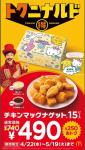 グルメ/スイーツ 【マクドナルド】大人気メニューがお得に食べれちゃうキャンペーンがスタート!サンリオキャラクターズコラボパッケージも数量限定♪5月19日までの限定だから急げ〜 yuim 2026年4月24日 マクドナルドの「トクニナルド」キャンペーン第3弾で、チキンマックナゲット15ピースが通常740円から490円に。サンリオキャラクターズの数量限定パッケージや新ソース2種も登場。5月19日まで。…続きを読む えん食べ [グルメニュース] 【マクドナルド】大人気メニューがお得に食べれちゃうキャンペーンがスタート!サ… https://entabe.jp/60128/mcdonalds-chicken-mcnuggets-tokuni-narudo-sanrio マクドナルドの「トクニナルド」キャンペーン第3弾で、チキンマックナゲット15ピースが通常740円から490円に。サンリオキャラクターズの数量限定パッケージや新ソース2種も登場。5月19日まで。 Source: えん食べ こちらもおすすめです!【2026年4月】注目グルメチェーン最新スイーツ・ドリンク情報まとめ!~ウェンディーズ・ファーストキッチン、築地銀だこ、不二家、Shake Shack~ 初夏の足音が近づく4月、人気のグルメチェーンから目を引く新商品が続々と登場しています。桃の瑞々しさを生かしたデザートドリンクから恐 […]【4月28日~発売】セブン-イレブン 新商品スイーツまとめ「7プレミアム カマンベールチーズスフレ 3号」「雲どら つぶあん&抹茶ホイップ」など セブン-イレブンで、4月28日から順次発売される新商品スイーツをご紹介します。「7プレミアム カマンベールチーズスフレ […]【2026年4月発売】ハンバーガーチェーン ドリンク新商品まとめ!マクドナルド・ゼッテリア・フレッシュネスバーガー・ウェンディーズ・ファーストキッチン・シェイク シャックの6ブランド 2026年4月に各ハンバーガーチェーンから登場する、ドリンク新商品をまとめてご紹介します。マクドナルド、ゼッテリア、フレッシュネス […]【2026年4月】GW・母の日・初夏スイーツ最新情報まとめ!~ザ・メープルマニア・ロイズ・台湾甜商店&万華・東京ばな奈×ちいかわ~ GWのおみやげから母の日ギフト、台湾の初夏を感じるフルーツスイーツ、話題のコラボポップアップまで、2026年4月は贈り物にも自分へ […]【日清新作 実食レビュー】「WAGYUMAFIA ULTRA U.F.O.」和牛旨味フレーバーを食べてみた 日清食品は、2026年3月23日より、完全会員制和牛専門店監修の新商品「WAGYUMAFIA ULTRA U.F.O. […]【2026年4月発売】紅茶スイーツ新商品まとめ「ごろっと白桃の紅茶シフォンケーキ」「PARM(パルム)白桃&アールグレイ(1本入り)」など 2026年4月に発売される紅茶スイーツ新商品をまとめてご紹介します。「ごろっと白桃の紅茶シフォンケーキ」や「PARM(パルム)白桃 […]【2026年4月】 注目グルメチェーン最新情報まとめ!~かっぱ寿司・和食さと・ペッパーランチ・クリスピー・クリーム・ドーナツ~ 春も深まり、飲食チェーンからは新メニューやキャンペーンが続々出ています。回転寿司の老舗「かっぱ寿司」が本格スイーツを展開するほか、 […]【2026年版】シャトレーゼの抹茶スイーツおすすめ6選|期間限定も紹介 毎年春になると、シャトレーゼでは抹茶スイーツが続々と登場します。今回はその中から、特におすすめしたい6品を厳選してご紹介します。… […]【KALDI】見逃し厳禁!海外っぽさがクセになるおかし7選|カラメルビスケット・ヌテラ。メガマシュマロなど KALDI(カルディ)で買える海外っぽさを楽しめるおやつを厳選して7つ紹介します。味も雰囲気も楽しめるため、ついついリピートしたく […]【関西】期間限定!抹茶を堪能できるアフタヌーンティー3選~茶想もりた園 なんば店、ザ・プリンス 京都宝ヶ池、ベンジャミンステーキハウス KITTE大阪店~ これから関西エリアで新たに登場する、抹茶をたっぷり味わえるアフタヌーンティーを厳選しました。どれも期間限定で、特別感のあるものばか […]【2026年4月・5月】母の日ギフトからLA発ドーナツまで!春~初夏の注目スイーツ最新情報!~ジャン=ポール・エヴァン、ロイズ、バターバトラー、ランディーズドーナツ~ 春から初夏にかけて、見逃せないスイーツの新情報が次々と届いています。パリの名門ショコラティエによる母の日限定コレクションからドーナ […]【4月21日発売】ファミリーマート 麺類新商品まとめ「ピリッと辛い 冷し鶏ねぎそば」「冷たい生パスタ 明太カルボナーラ」など ファミリーマートで、4月21日に発売される麺類の新商品をまとめてご紹介します。「ピリッと辛い 冷し鶏ねぎそば」や「冷たい生パスタ […]【4月21日発売】ファミリーマート 新商品スイーツまとめ「大きなティラミス」「北海道産練乳のいちご氷バー 」など ファミリーマートで、4月21日に発売される新商品スイーツをまとめてご紹介します。「大きなティラミス」や「北海道産練乳のいちご氷バー […]【2026年4月発売】抹茶スイーツ新商品まとめ第6弾!ファミリーマート「宇治抹茶スティックケーキ」・サンマルクカフェ「プレミアム濃密抹茶チョコクロ