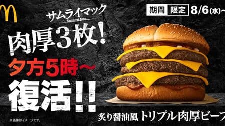グルメ/スイーツ 【本日発売】マクドナルド「炙り醤油風 トリプル肉厚ビーフ」夜マック2週間限定で復活!つなぎなし100%ビーフ3枚×チェダーチーズ3枚 2025年8月6日 yuim 世の中美味しいものたくさん